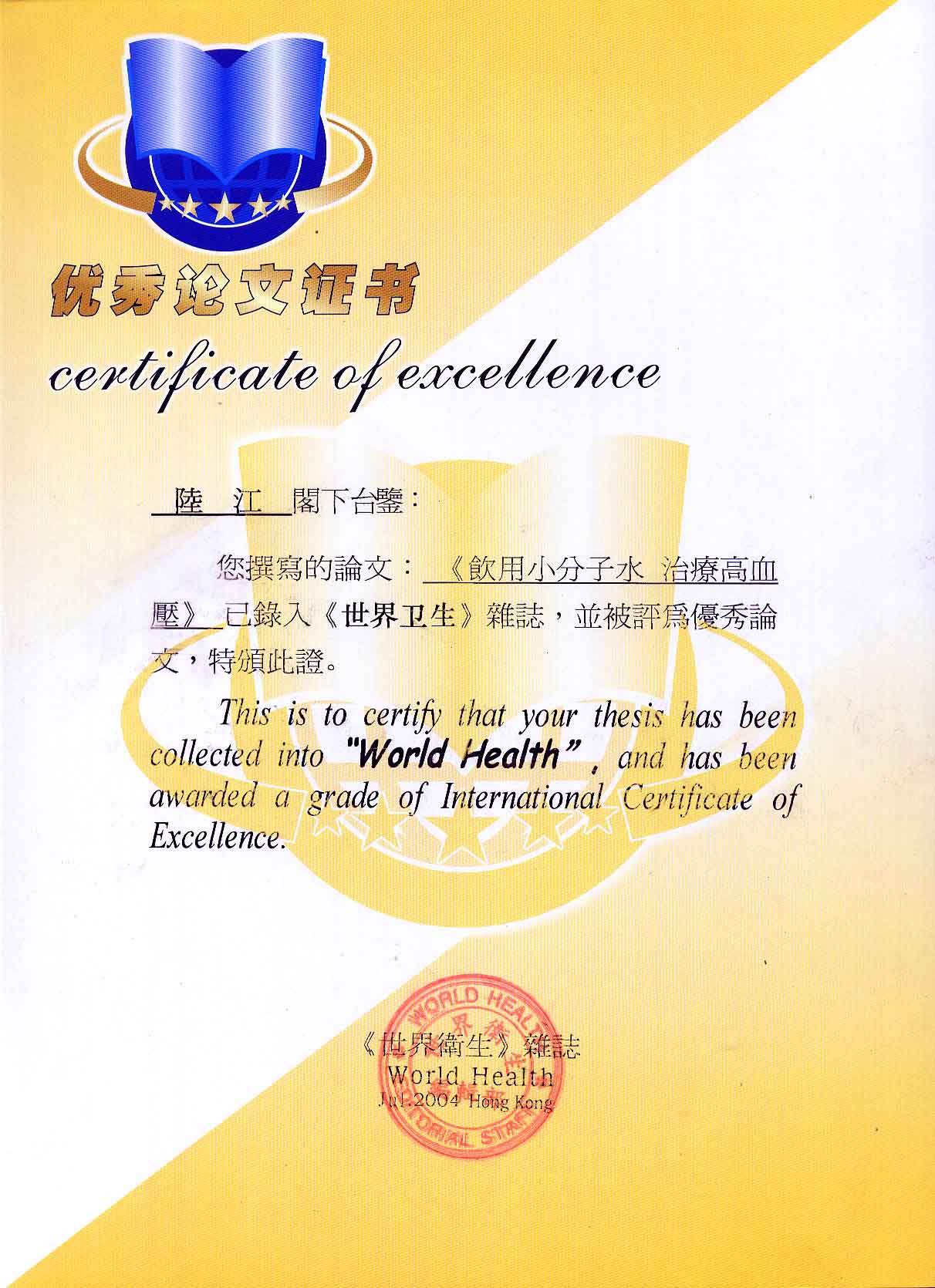 一、創(chuàng)造了在家在職場使用方便的微小分子團水器具。在世界上首先用此理療方法,大規(guī)模地成功地逆轉(zhuǎn)和消除動脈粥樣硬化,確實祛俆高血壓和冠心病與糖尿病,使患者恢復動脈和心臟及胰島的健康,可消除因細胞缺水使器官衰弱而形成多種器官的缺水性病癥,并使健康人可預防和減緩動脈粥樣硬化,減少心腦血管病,具有重大的社會經(jīng)濟和戰(zhàn)略意義。